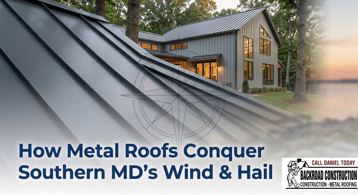 Hashtags: #MetalRoofing #SouthernMaryland #CalvertCounty #StMarysCounty #ConstructionMD #RoofingDurability #StormProofRoof #HailResistance #WindResistance #BackroadConstruction #RoofReplacement #MarylandContractor